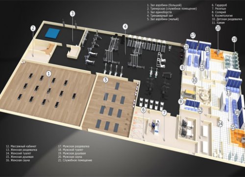Как можно видеть, наша компания оказывает полный перечень услуг по разработке интерьера фитнес-центра в Новокузнецке. Благодаря большому опыту работы и профессионализму наших дизайнеров, мы качественно оказываем услуги, а работы всегда выполняем в полном объеме и в установленный срок.