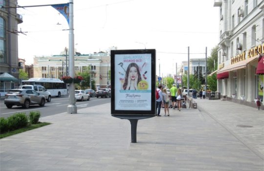 Заходя в магазин или торговый центр, люди сталкиваются с рекламными конструкциями различных форматов. Частота контактов потенциальных клиентов с рекламой, размещенной на пилонах (сити-форматах), находится на очень высоком уровне. По статистике, с данной рекламной конструкцией, установленной на фасаде здания, люди могут контактировать до нескольких тысяч раз в сутки.