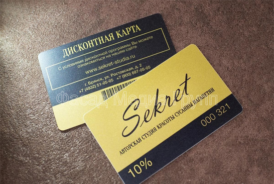 Рекламное агентство «Фасад Медиа Групп» предлагает гибкие условия разработки дизайн-проекта и изготовления пластиковых карт и подарочных сертификатов в Новокузнецке и Кемеровской области, выгодные цены.