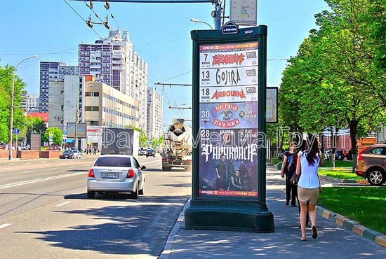Воздействие на максимальное количество людей является несомненным достоинством тумб и пилларсов. Устанавливая тумбы и пилларсы, можно массово воздействовать на целевую аудиторию, повышая тем самым эффективность рекламы.