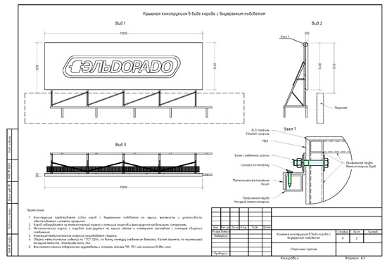 Процесс проектирования вывески разбивается на несколько этапов. К основным этапам проектирования указанной рекламной конструкции относятся: