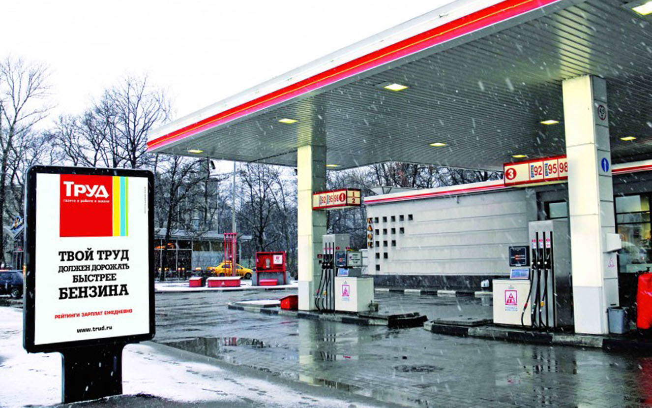 Отдельные конструкции наружной рекламы ориентированы на водителей (суперсайты), отдельные на пешеходов (сити-форматы), другие же на пассажиров общественного транспорта (сити-форматы на остановках) и т.д. Однако существует вид наружной рекламы, который носит, пожалуй, универсальный характер, т.е. способен привлечь внимание самой широкой аудитории. К такому виду относятся рекламные поверхности на АЗС.