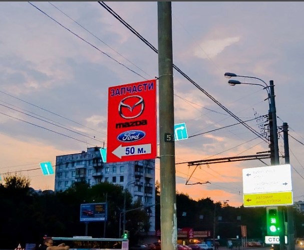 Пример рекламы на дорожных указателях. Фото 1