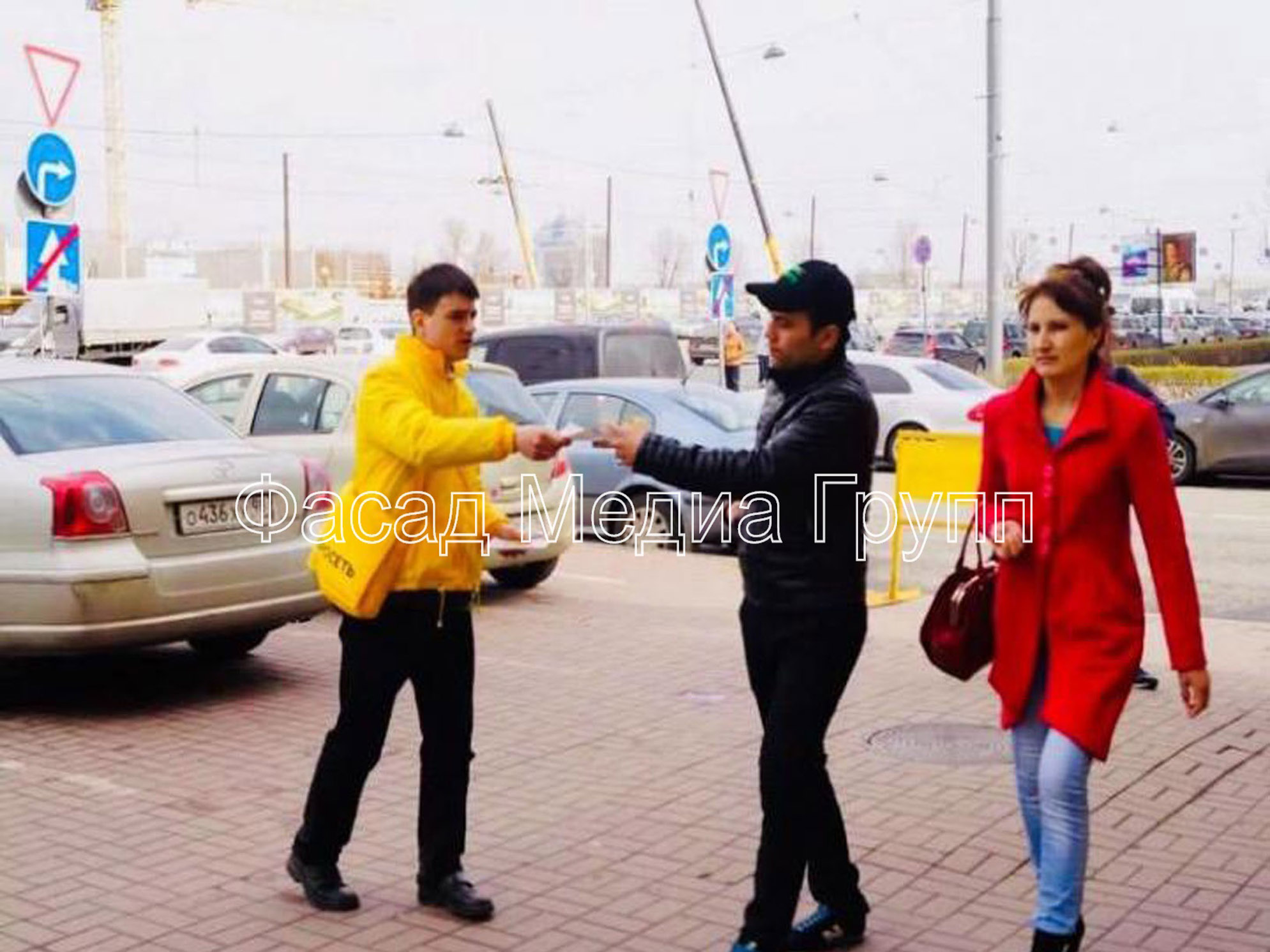 Пример раздачи листовок, буклетов, флаеров, афиш и другой печатной продукции. Фото 3