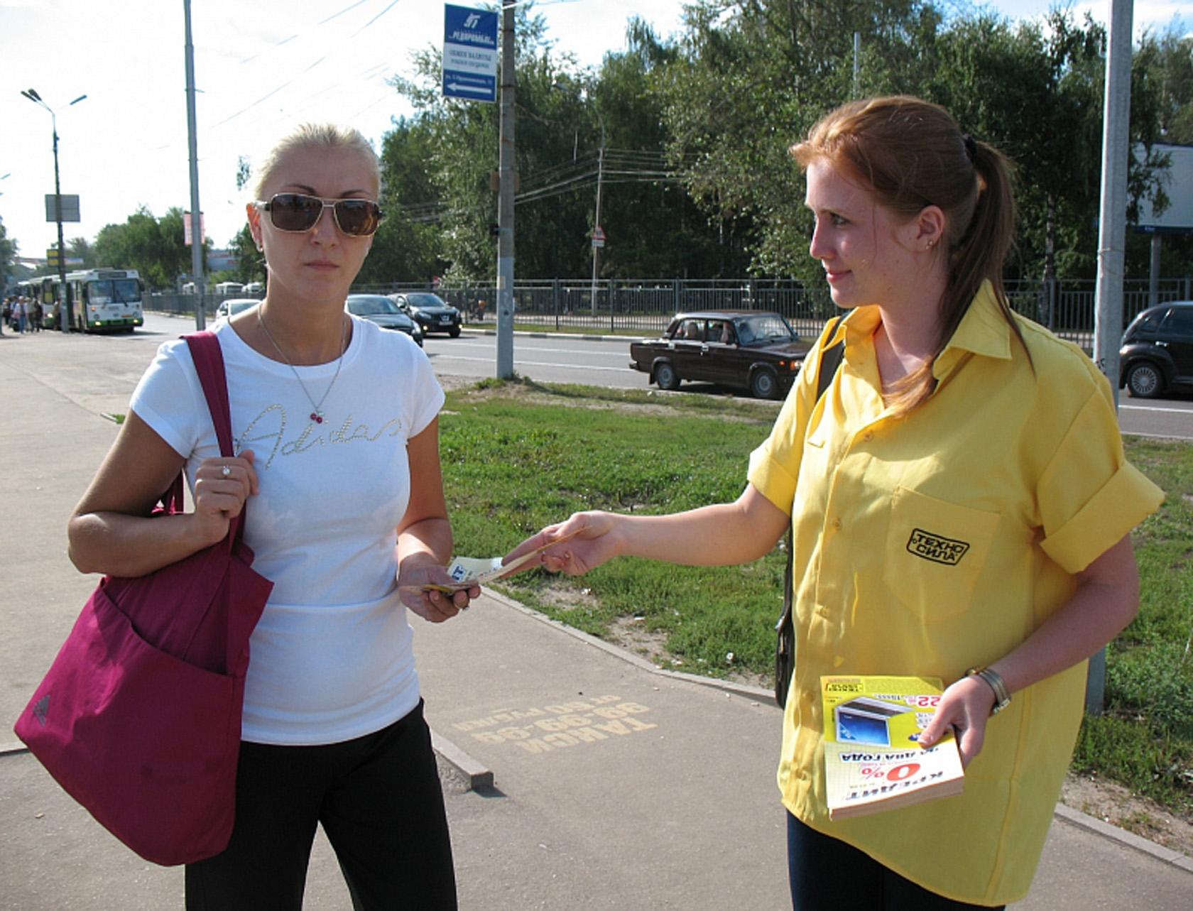 Итак, кому вручается печатная рекламная продукция? Раздача листовок, визиток, буклетов и т.д. на улицах города ориентирована, в первую очередь на: