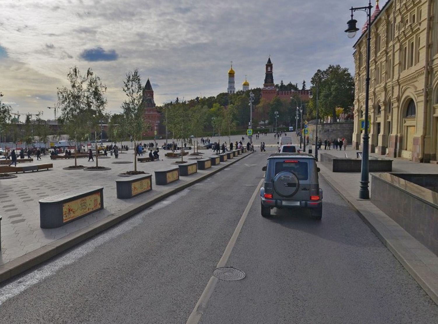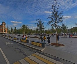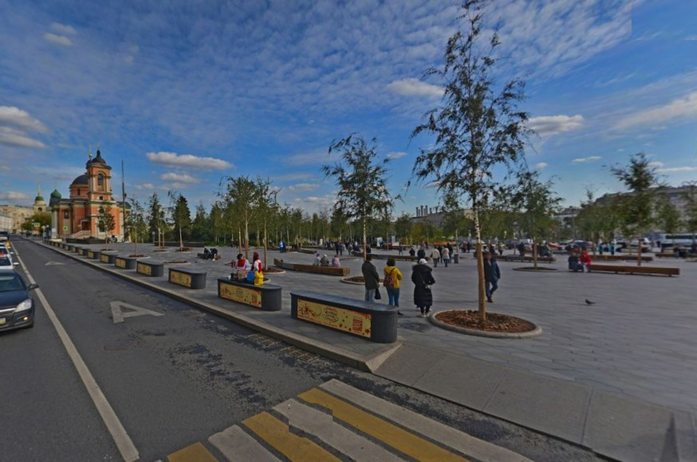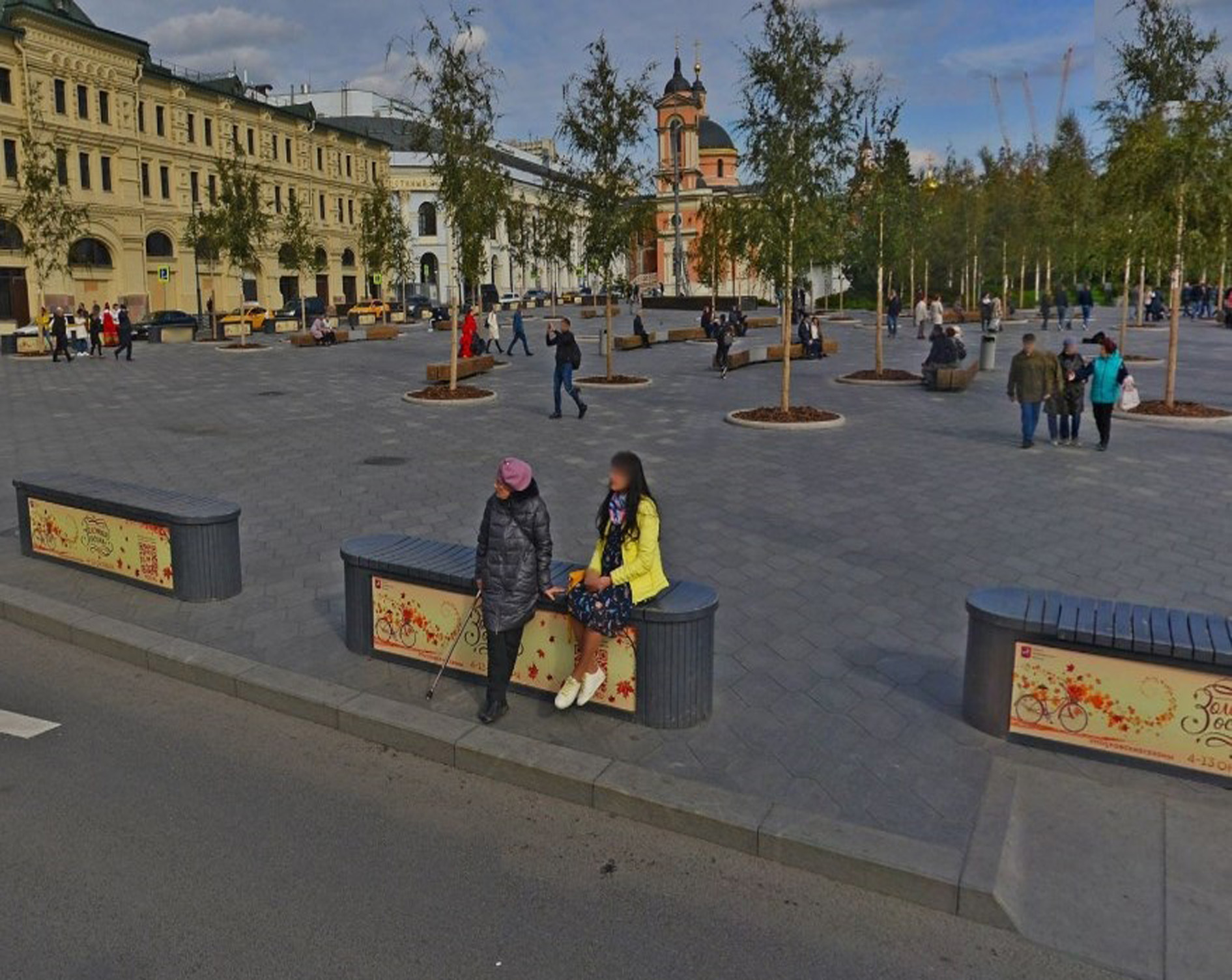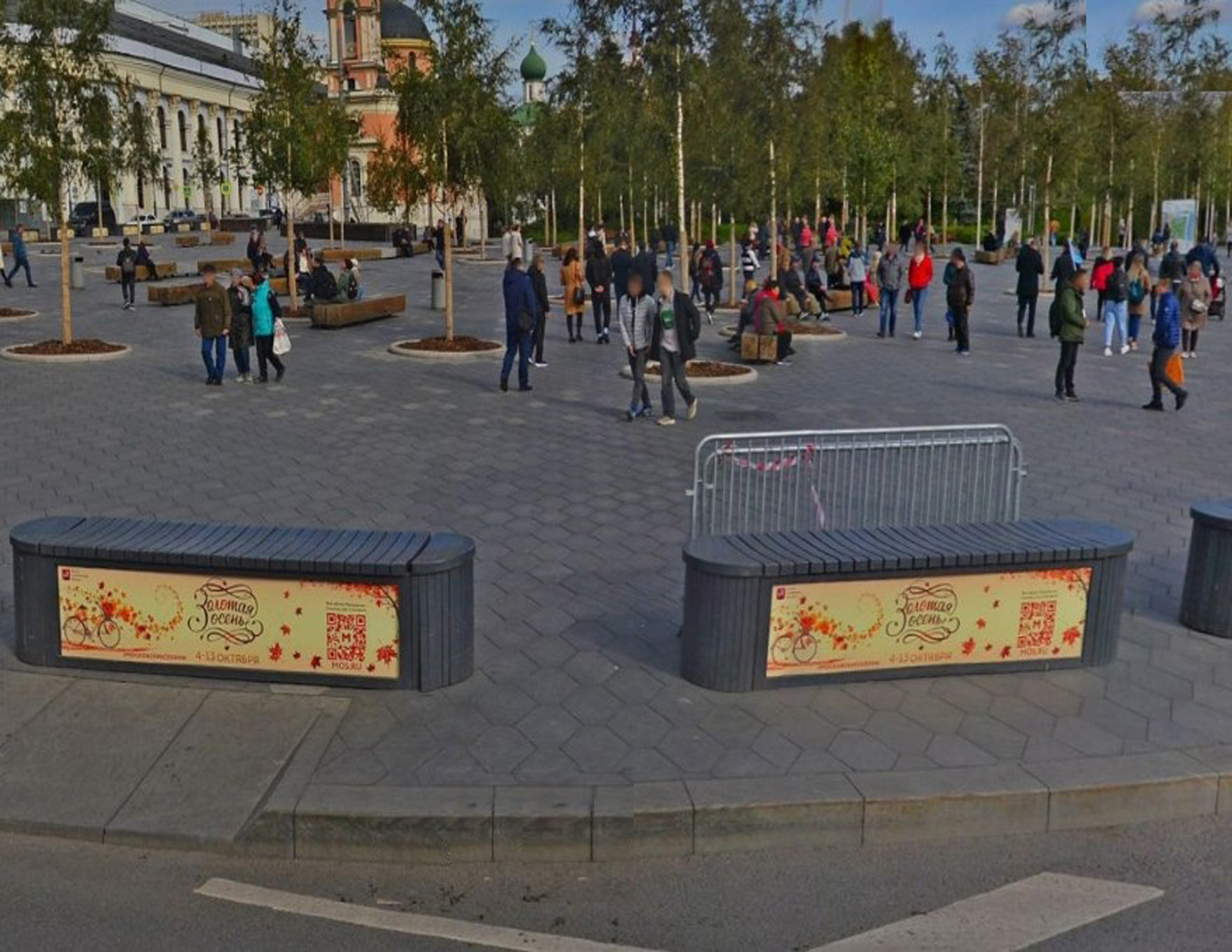 Большое количество установленных скамеек