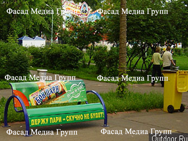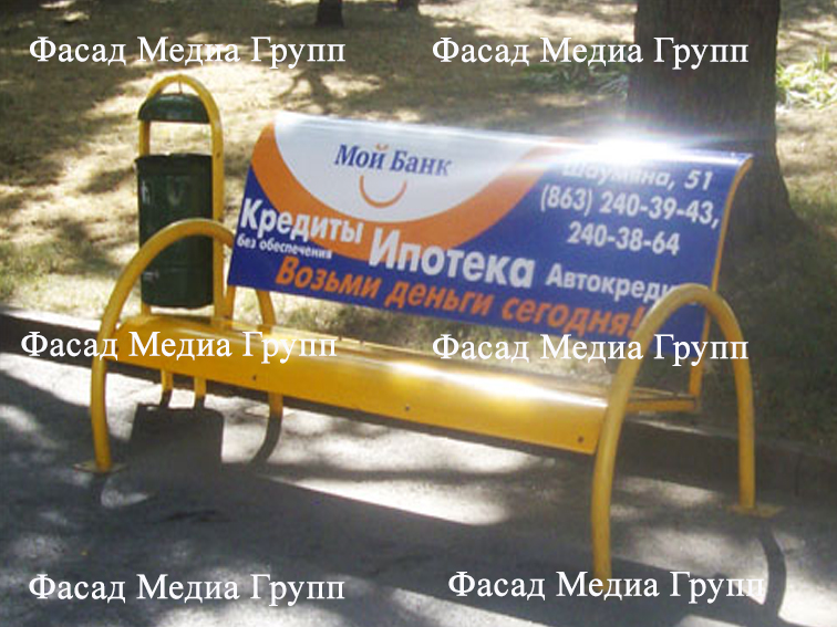 Уважаемые друзья! Для размещения рекламы на скамейках обращайтесь в рекламное агентство «Фасад Медиа Групп». Высокий уровень сервиса и низкие цены гарантируем. Мы все сделаем сами: дизайн и печать макета, монтаж и демонтаж. Фотоотчёт предоставляем бесплатно и в 100% объеме.