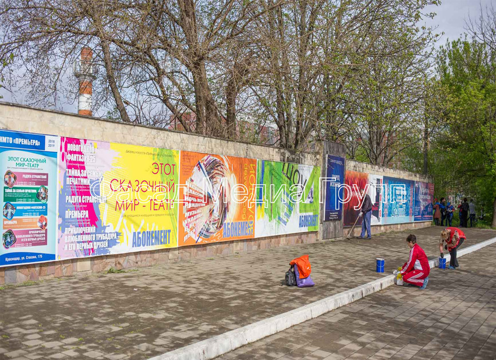 Размещая рекламу на заборах, вы сможете мгновенно охватить всех людей без исключения. В условиях городской среды размещение информации о компании на заборах является эффективным средством продвижения бренда организации, поддержания внимания к вашему бизнесу, привлечения новых клиентов и удержания старых покупателей и заказчиков. Именно заборы, установленные на улицах города, помогают горожанам увидеть необходимую рекламную информацию. Заборы способствуют быстрому распространению рекламной информации, хорошей заметности рекламного материала, делают рекламную кампанию еще более эффективной, а бизнес прибыльным. Для размещения рекламы на заборах обращайтесь в рекламное агентство «Фасад Медиа Групп». Будем рады сотрудничеству.
