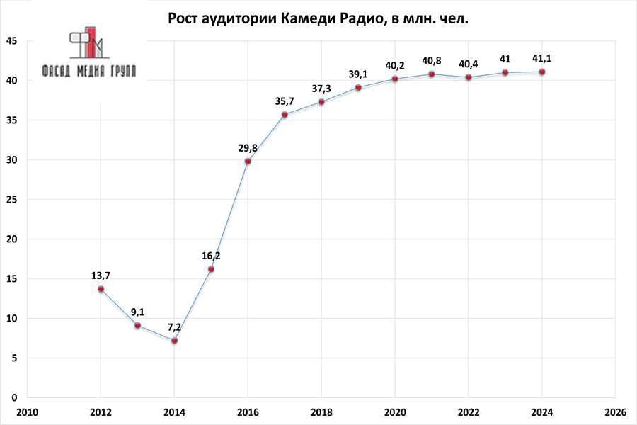 Для получения коммерческого предложения по размещению рекламы на «Камеди радио» в Новокузнецке необходимо обращаться в рекламное агентство «Фасад Медиа Групп». Наши менеджеры подготовят медиаплан, составят график выхода, определят наиболее выгодное время выхода рекламы с учетом вашей целевой аудитории.