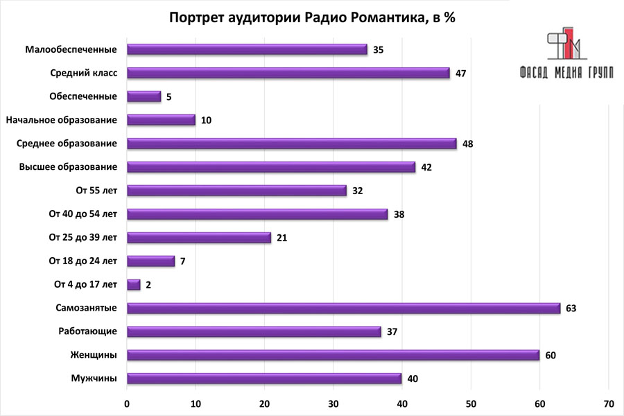 На вопрос: «Какова целевая аудитория радио «Романтика»? - можно указать следующее: