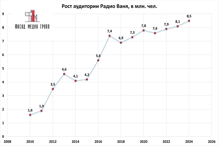 Бизнес в Новокузнецке давно и по достоинству оценил эффективность рекламы на радио «Ваня». Десятки тысяч рекламодателей в Новокузнецке размещают рекламу на радио «Ваня». Реклама на данной радиостанции представляет собой один из самых быстрых и эффективных способов рассказать о своем бизнесе, о бренде компании, продаваемых товарах и оказываемых услугах. За размещением рекламы на радио «Ваня» обращайтесь в рекламное агентство «Фасад Медиа Групп». Будем рады сотрудничеству.