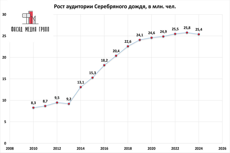 Медиаметрические показатели аудитории «Серебряный Дождь»: