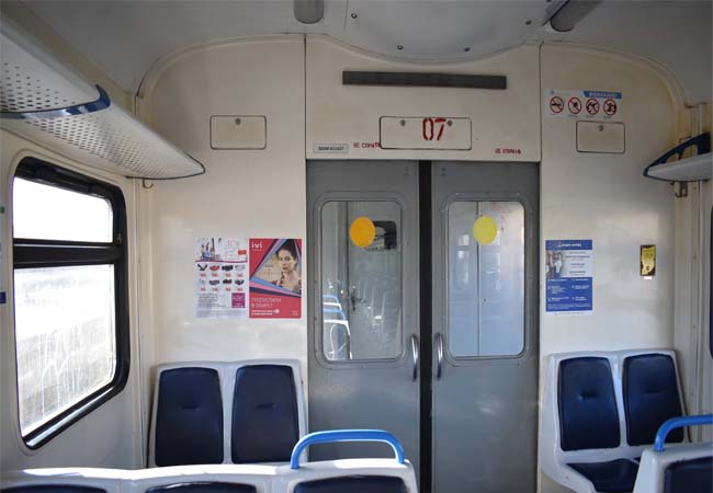Примеры рекламы в электричках в Новокузнецке представлены на фото: