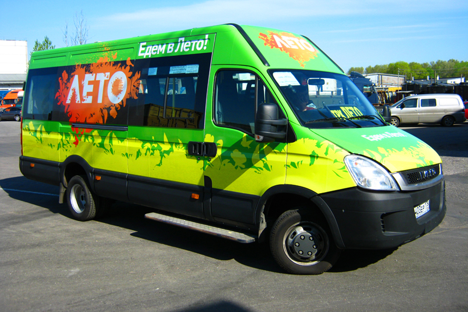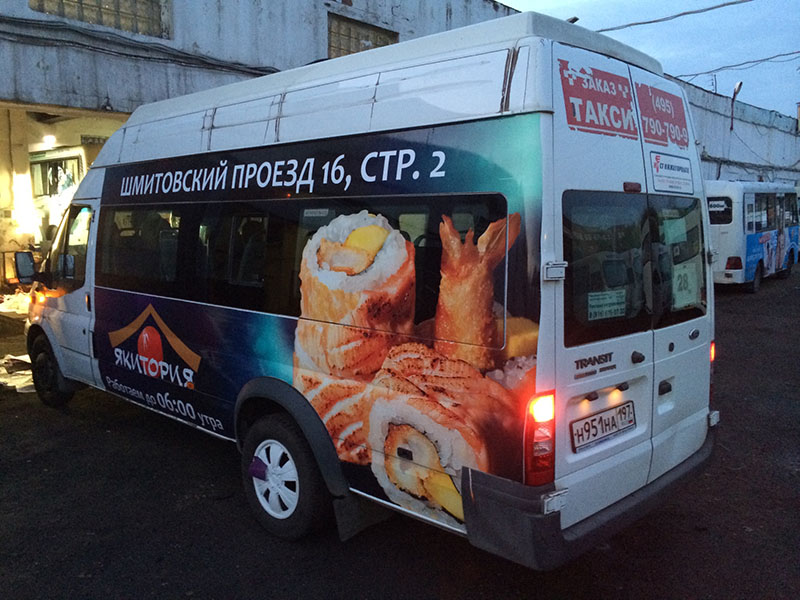 Пример брендирования маршрутки самоклеящейся пленкой: