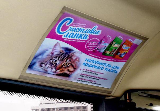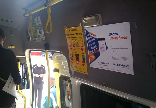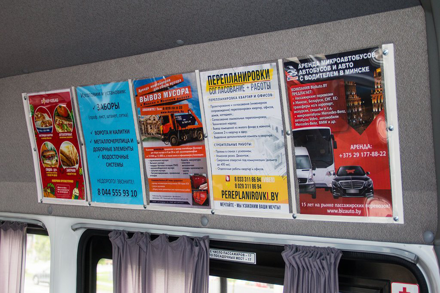 Монтаж рекламы в маршрутках осуществляется по-разному в зависимости от того, какой рекламный материал и где размещается.