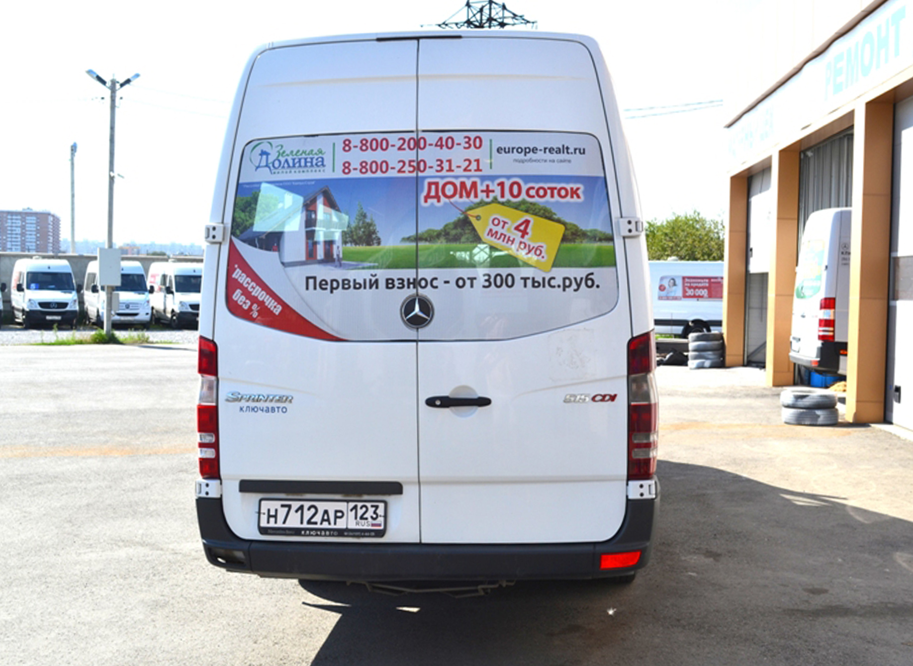 3) процесс брендирования (оклейки) маршрутки рекламой: