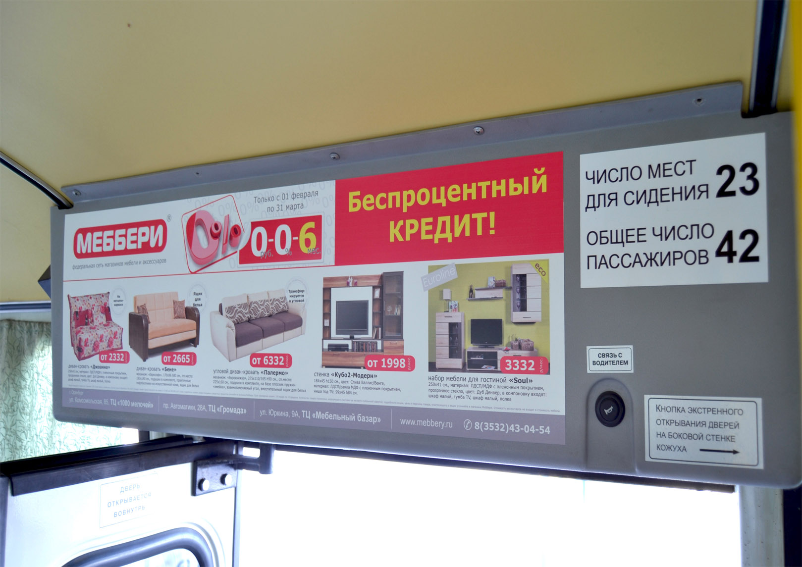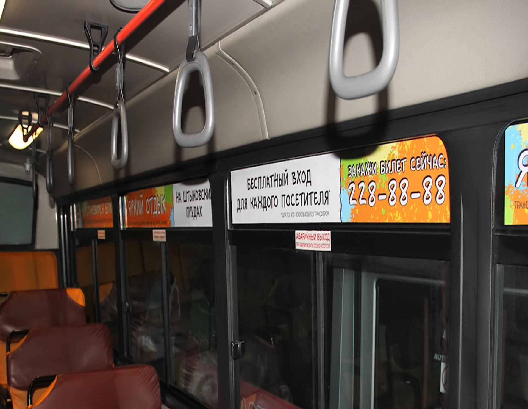 Сколько стоит размещение стикеров в салоне междугороднего автобуса в Новокузнецке?