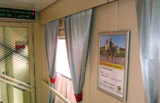 Монтаж рекламы в поездах дальнего следования осуществляется по-разному в зависимости от того, какой рекламный материал и где размещается.