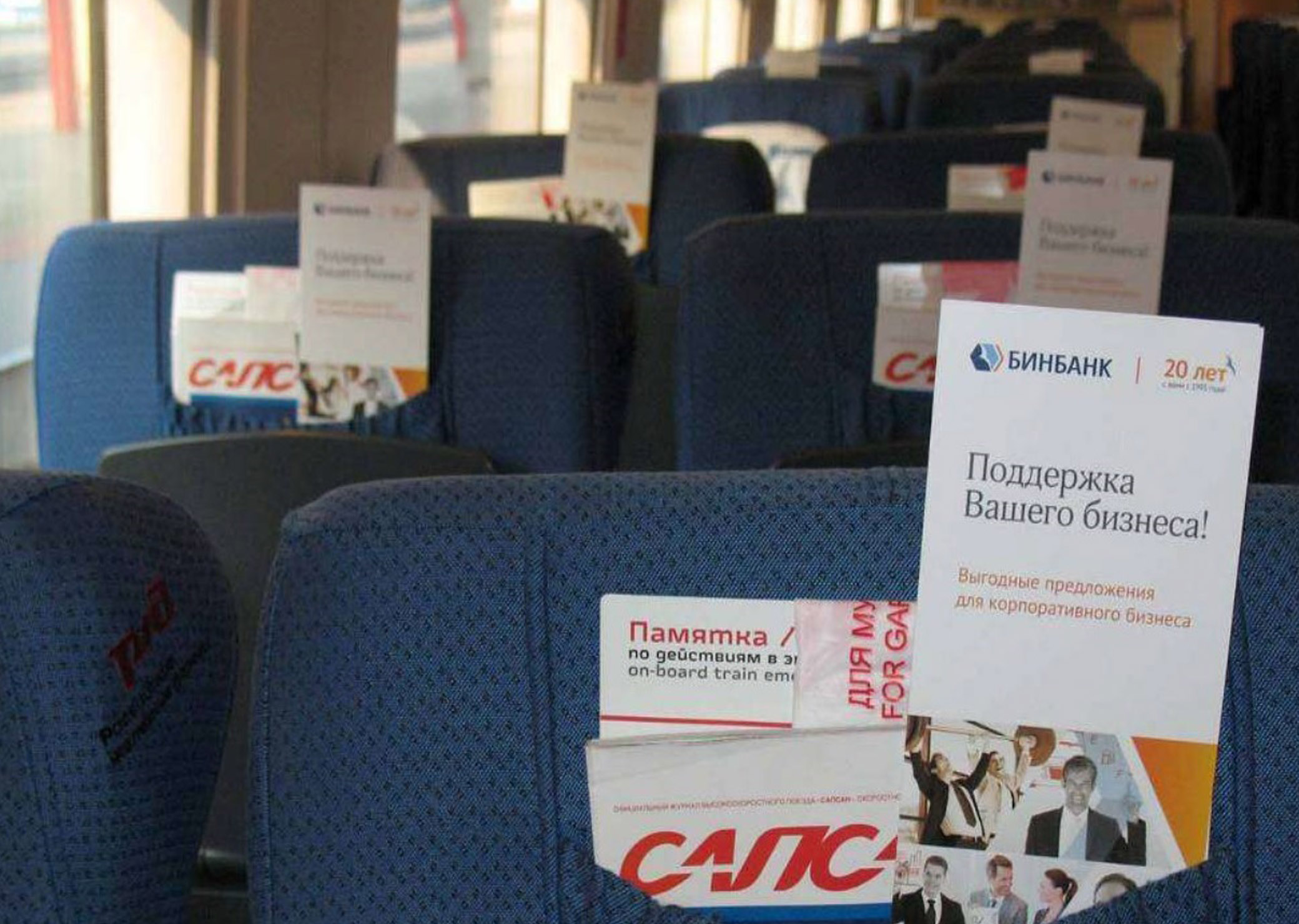 Рекламные листовки в поездах на фото выше