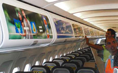 Постеры для рекламы на самолетах мы советуем печатать на скроллерной бумаге или на полиэтилентерефталатной пленке.