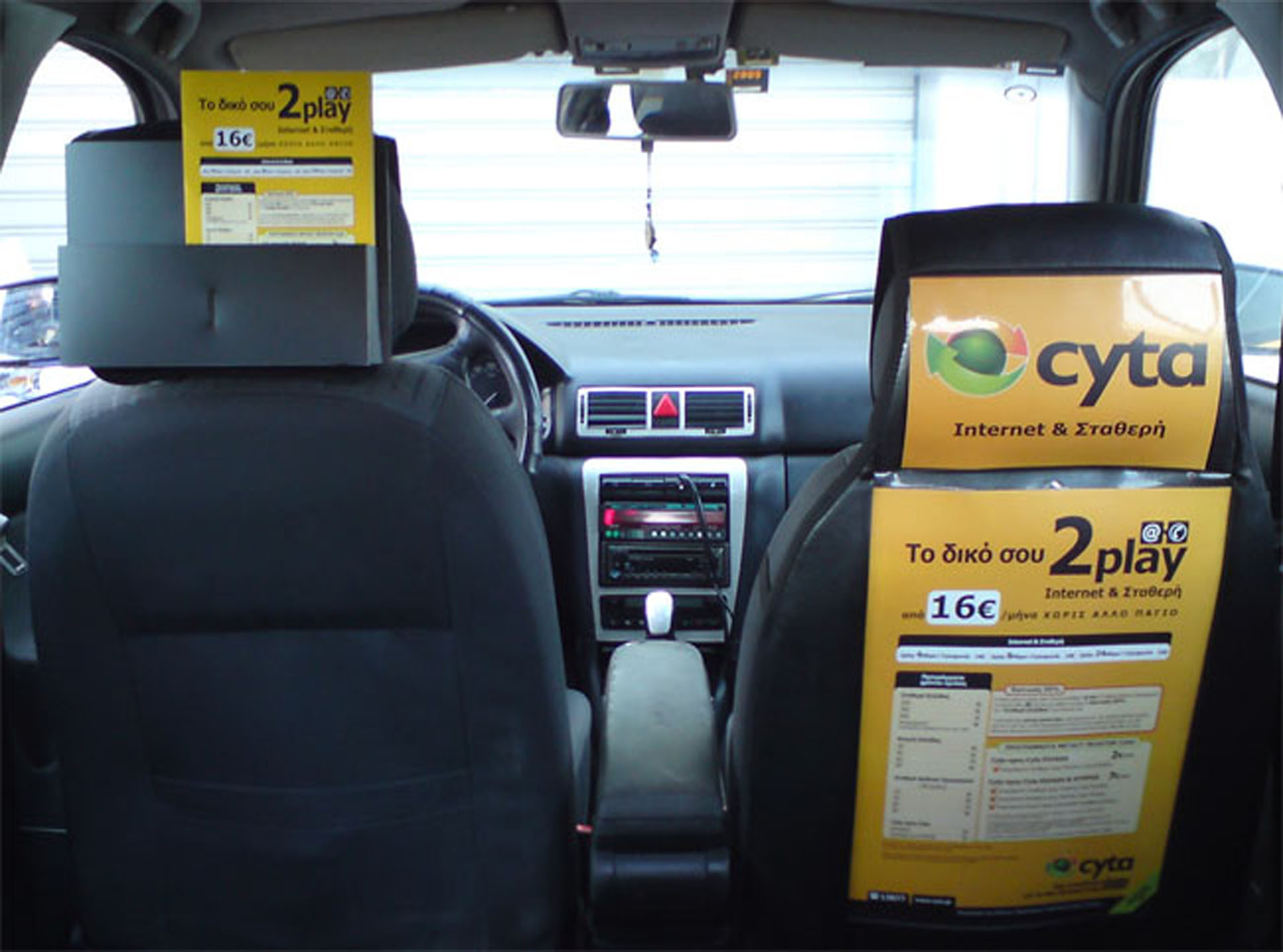 Многие рекламодатели с большим удовольствием размещают рекламу на/в такси. Что же представляет собой реклама на/в такси? Реклама на/в такси – это рекламное объявление, размещенное как внутри салона такси (листовки, постеры, мониторы), так и снаружи (оклейка дверей, бортов, заднего стекла, полностью кузова транспортного средства), сообщающее пассажирам, прохожим, а также водителям частных авто информацию о предлагаемых товарах, услугах и местах их приобретения.