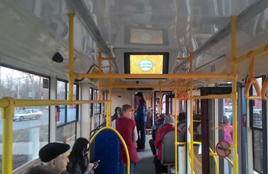 Напомним, что рекламу в трамваях в Новокузнецке можно разместить как в виде стикера, афиши, бортовой оклейки, так и запустить трансляцию рекламного ролика на установленных в салоне транспортного средства мониторах.