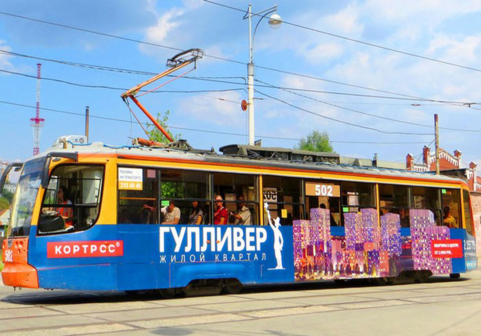 Многие рекламодатели с большим удовольствием размещают рекламу на/в трамваях. Что же представляет собой реклама на/в трамваях? Реклама на/в трамваях – это рекламное объявление, размещенное как внутри салона трамвая (листовки, постеры, мониторы), так и снаружи (оклейка дверей, бортов, заднего стекла, полностью кузова транспортного средства), сообщающее пассажирам, прохожим, а также водителям частных авто информацию о предлагаемых товарах, услугах и местах их приобретения.