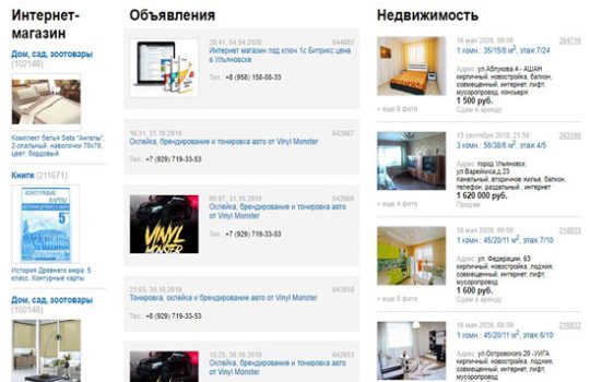 Предусмотрено размещение новостей и анонсов событий в «Афише» на правах рекламы, рекламное размещение в каталоге организаций, а также – размещение платных объявлений (в т.ч. – объявления о вакансиях, продаже авто и недвижимости).