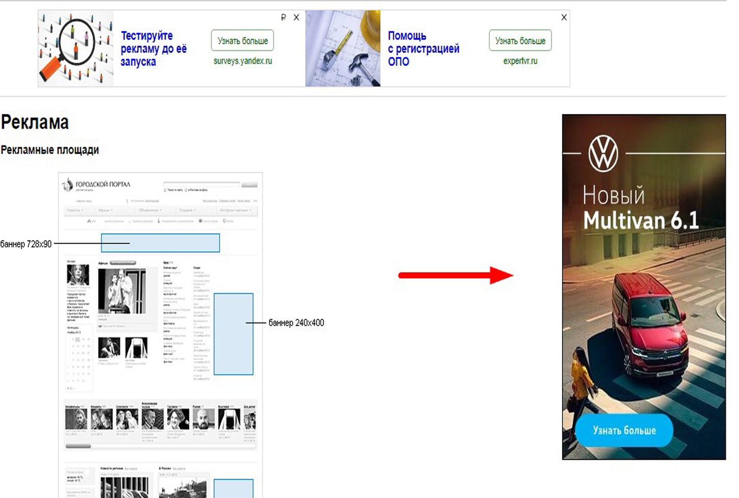 Медийная реклама – баннеры, видеоролики и другие графические форматы. Выделяют следующие виды медийной рекламы в городском интернет-портале: