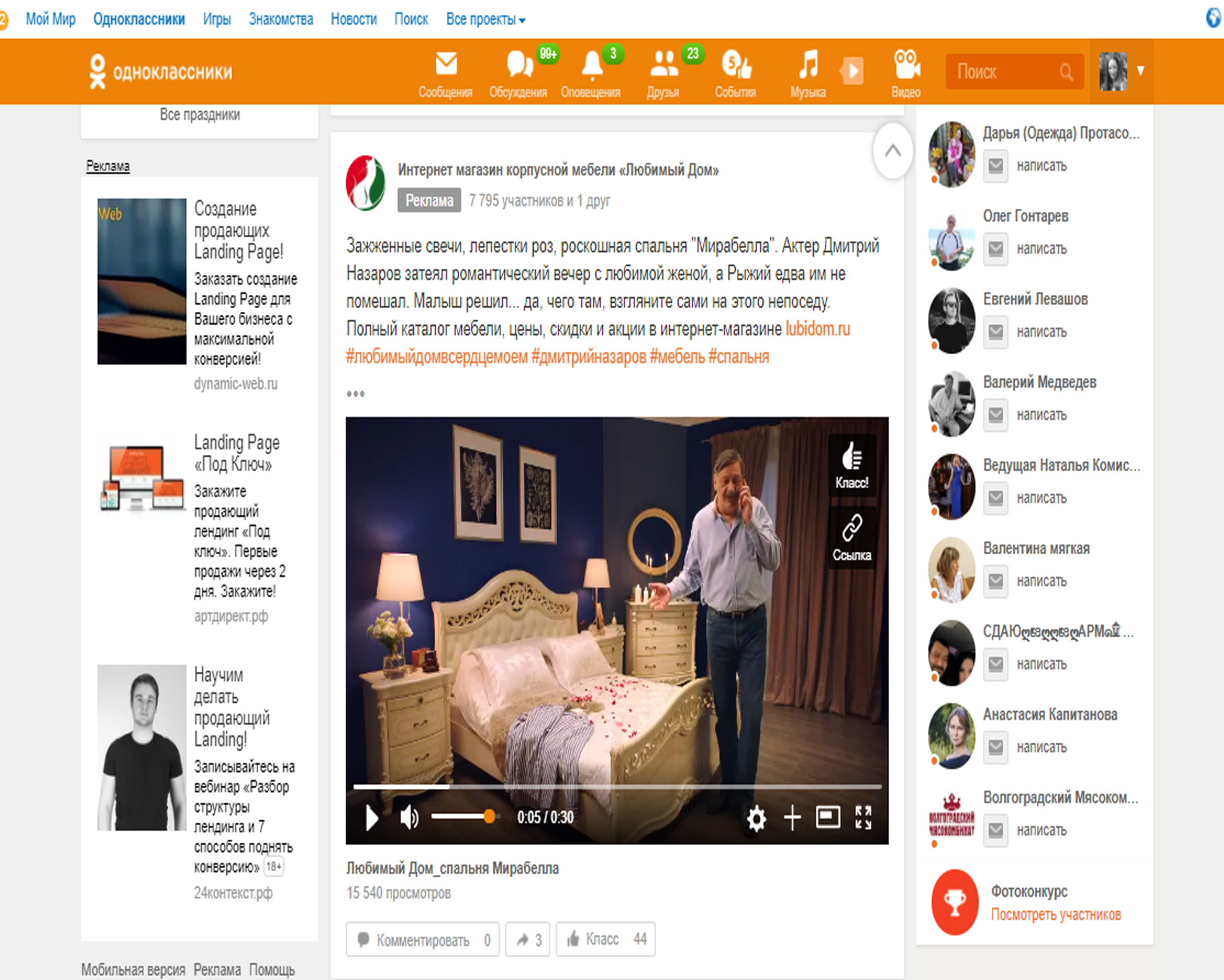 3. Фото – и видеореклама в Одноклассниках бывает следующих видов: