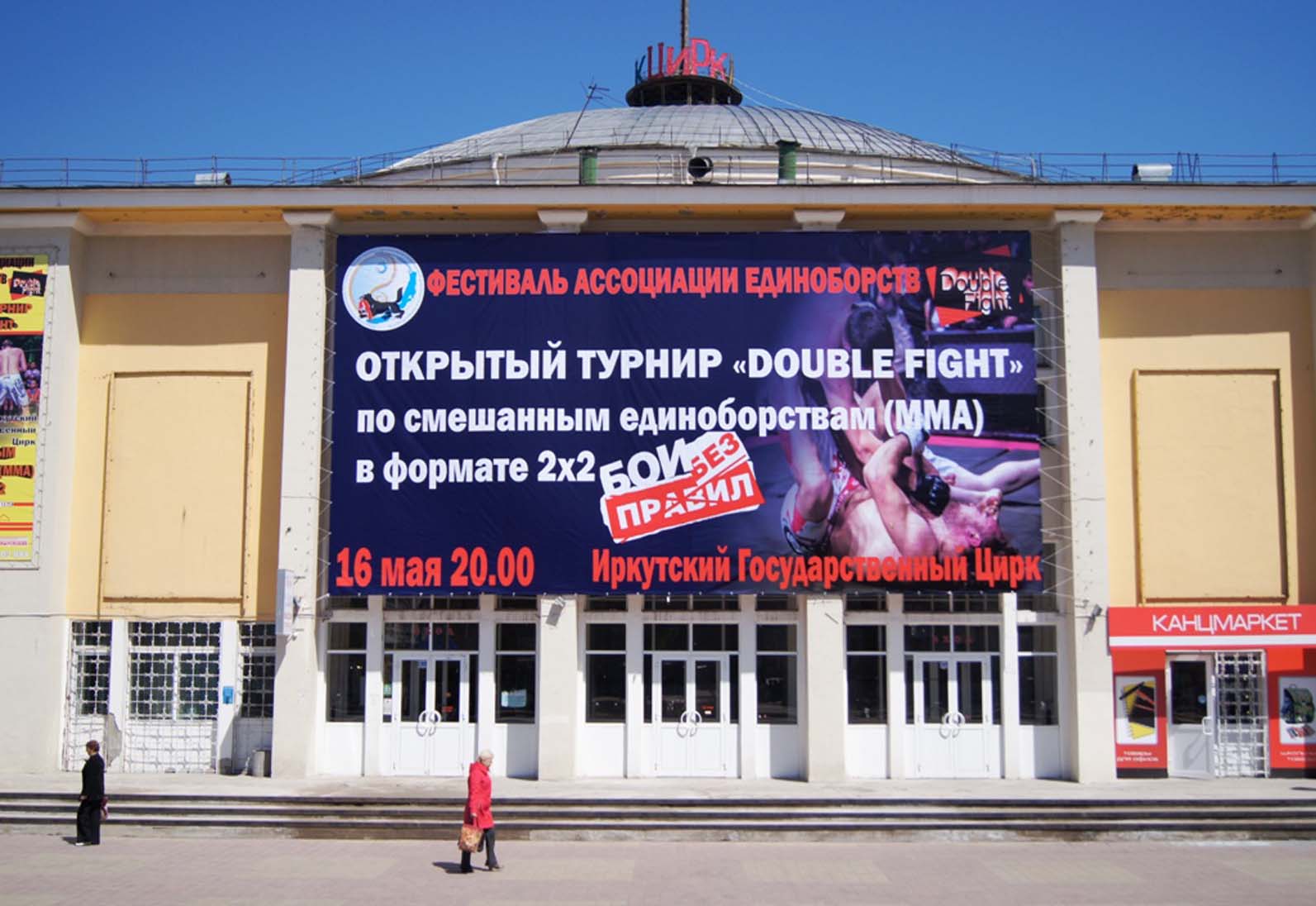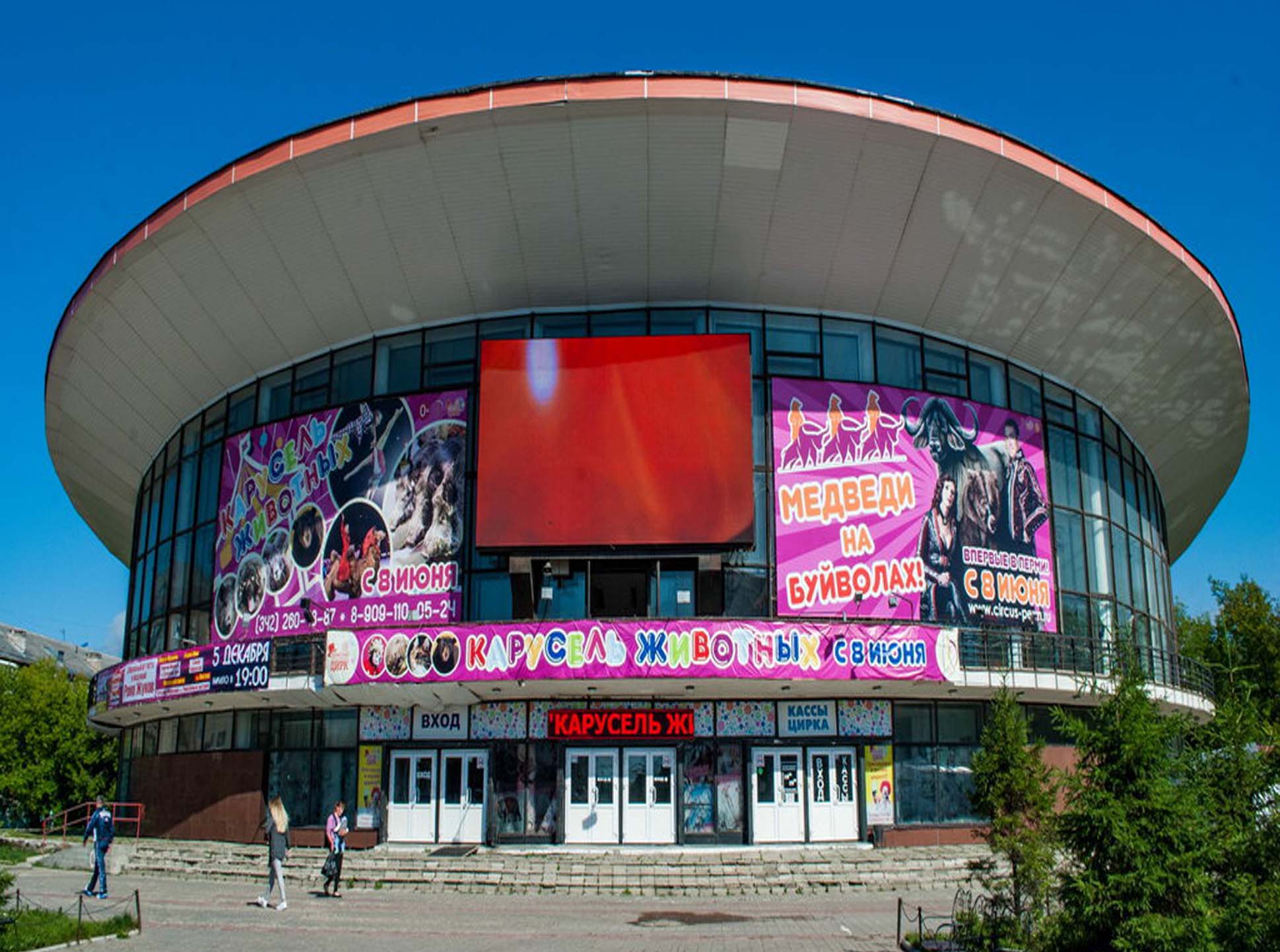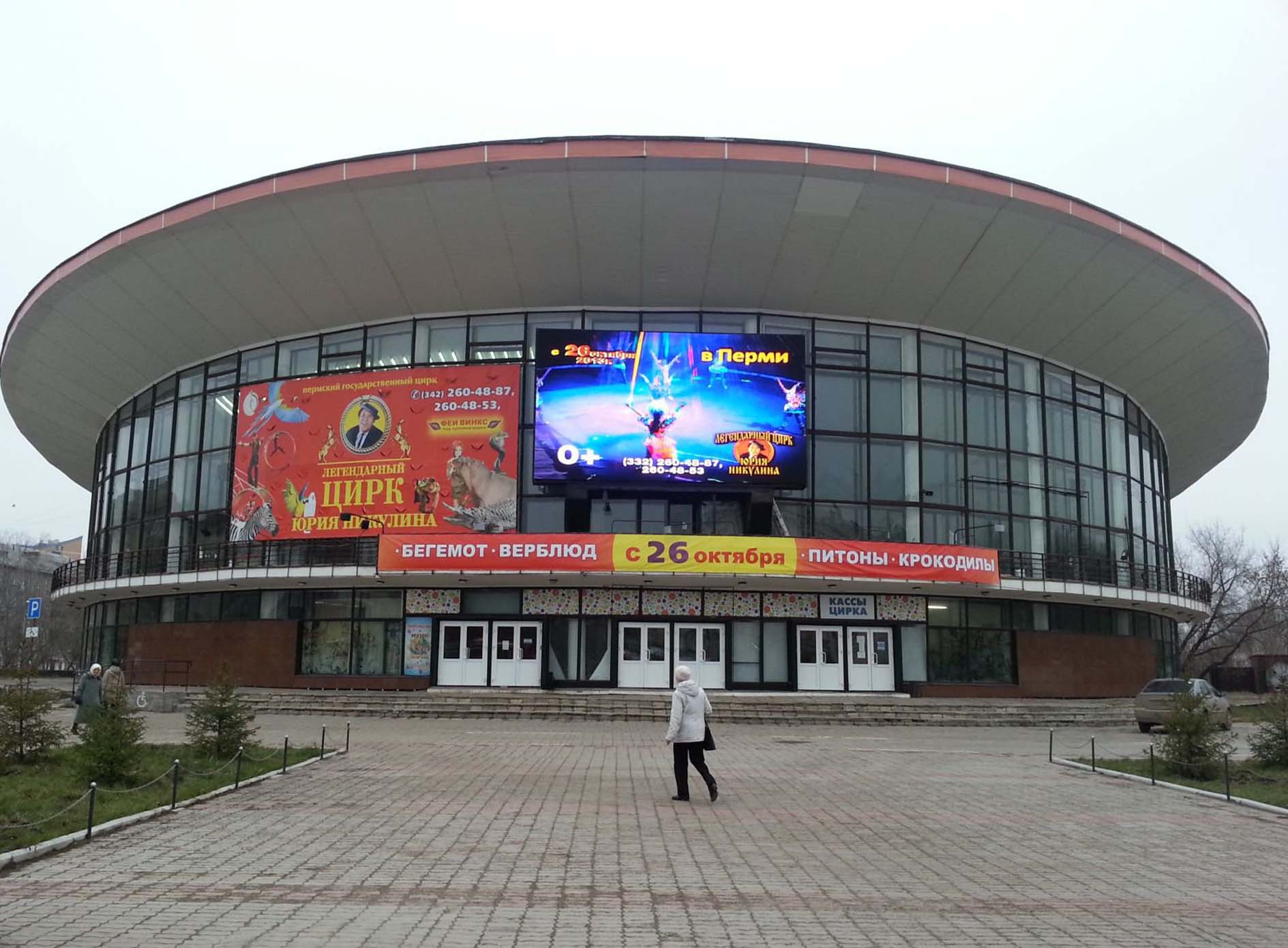 Пример рекламного баннера на здании цирка: