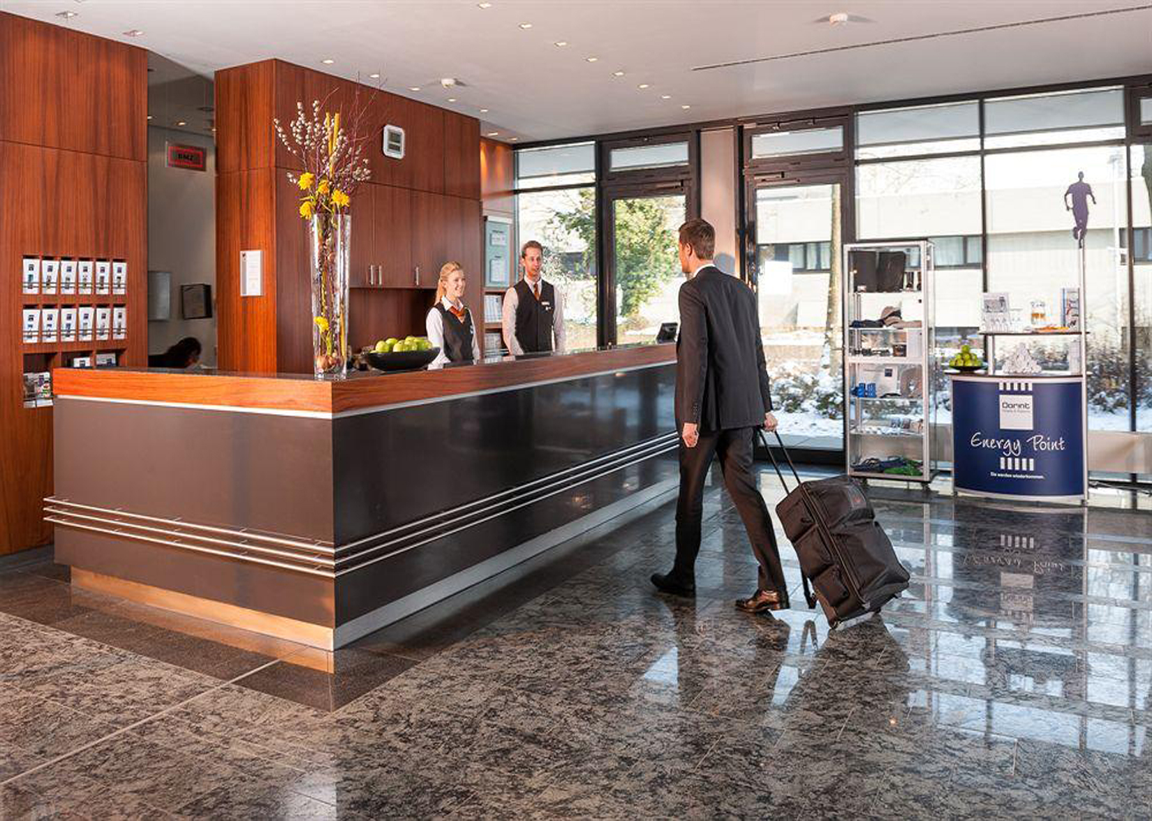 Пример брендирования входа и зоны ресепшн в гостиницах: