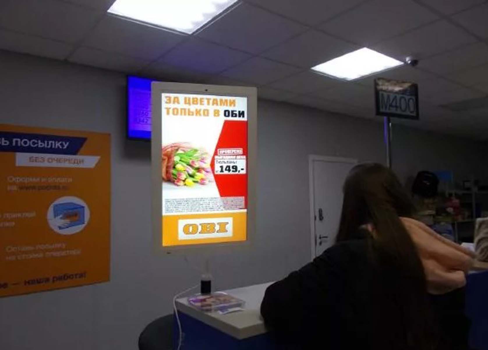 Пример рекламы на мониторе в отделении Почты России: