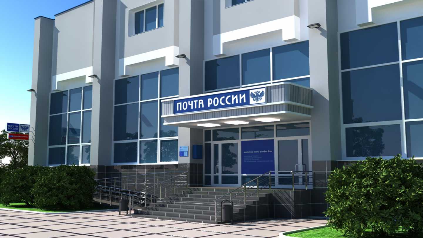 Пример брендирования фасада отделения Почты России: