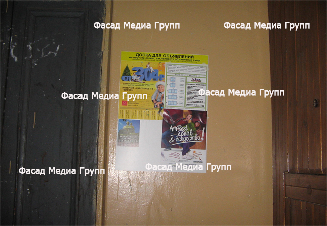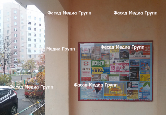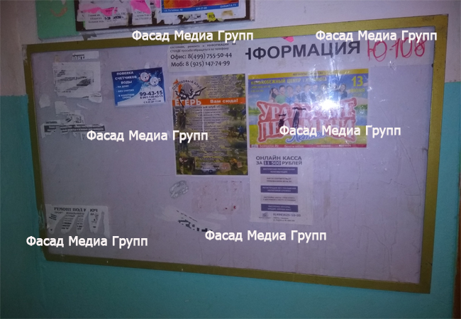 Как можно видеть, рекламное агентство Фасад Медиа Групп оказывает широкий перечень услуг по рекламе в подъездах. Работы по размещению рекламы в подъездах мы выполняем «под ключ».