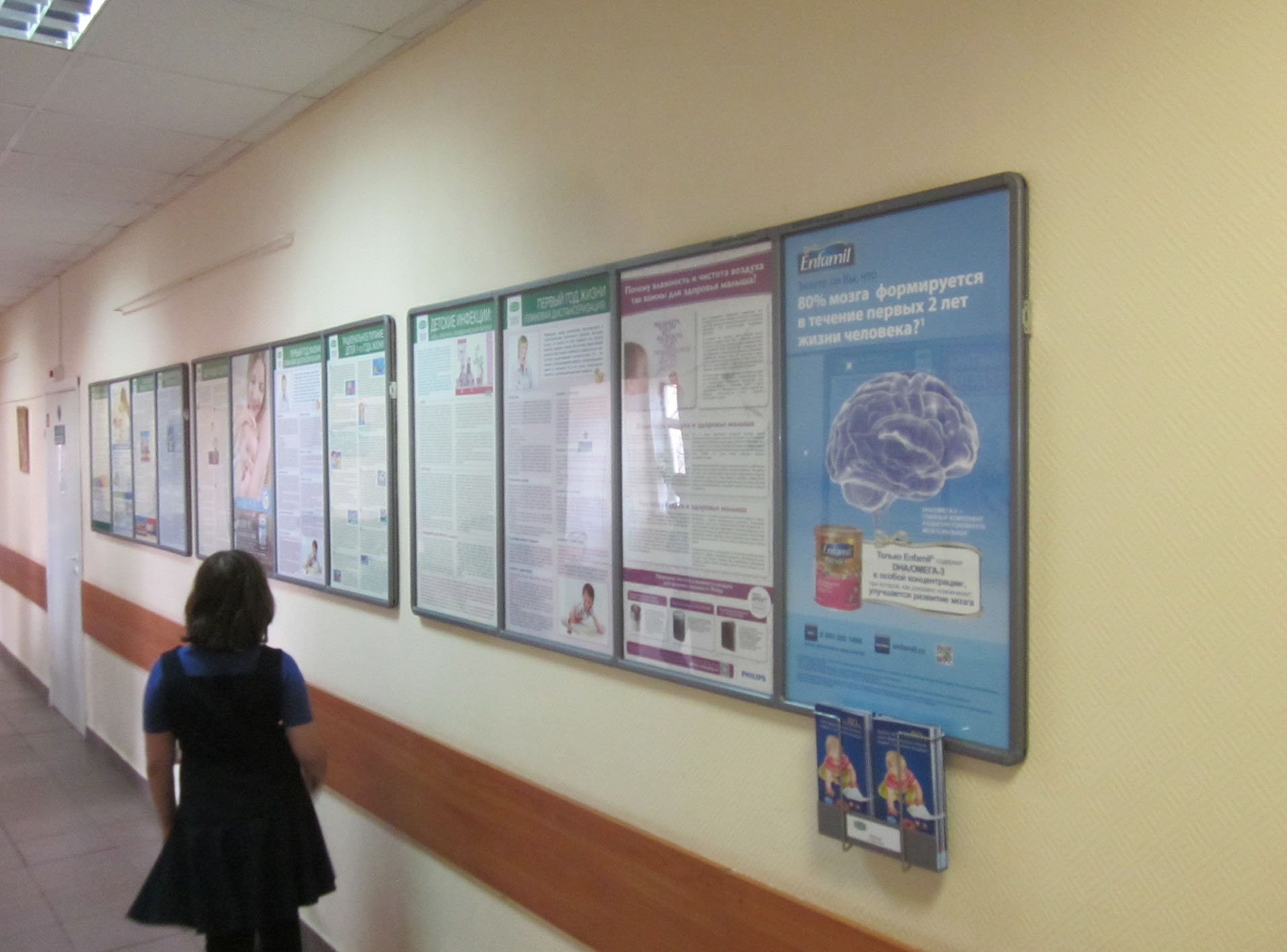 Примеры наших работ при размещении рекламы в поликлиниках представлены ниже: