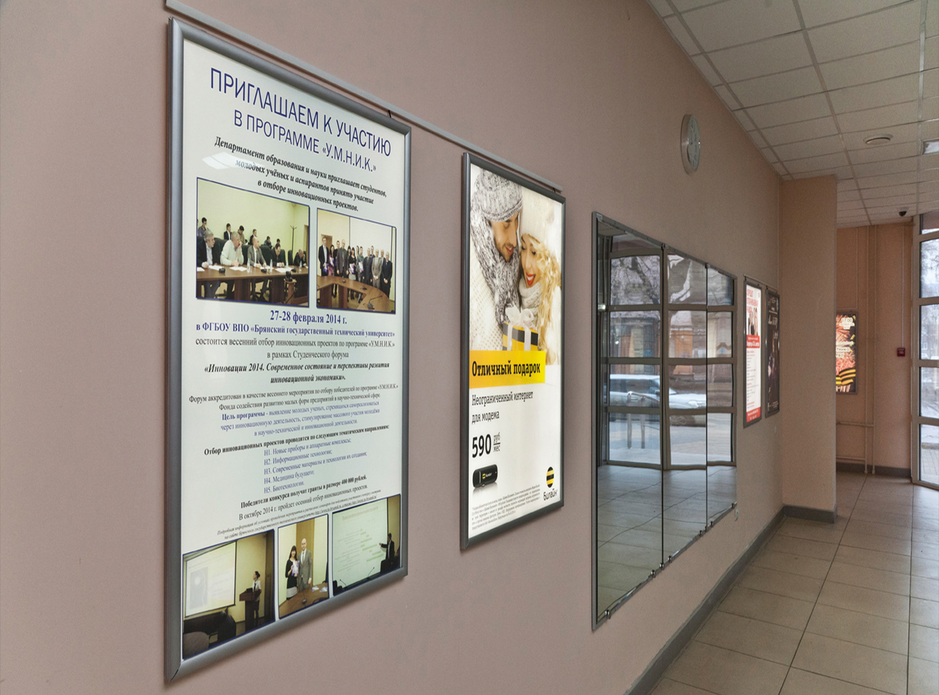 Реклама внутри помещений позволяет рекламодателю понять, какая аудитория бывает в помещении здании, сооружении, в котором он планирует разместить рекламное объявление. Благодаря этому, размещая рекламные материалы внутри помещений, можно не только значительно повысить эффективность рекламной кампании, но и снизить финансовые затраты на ее проведение.